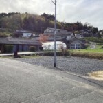 【土地・建物情報】小川と田園が見える中古物件 約59坪の駐車場付